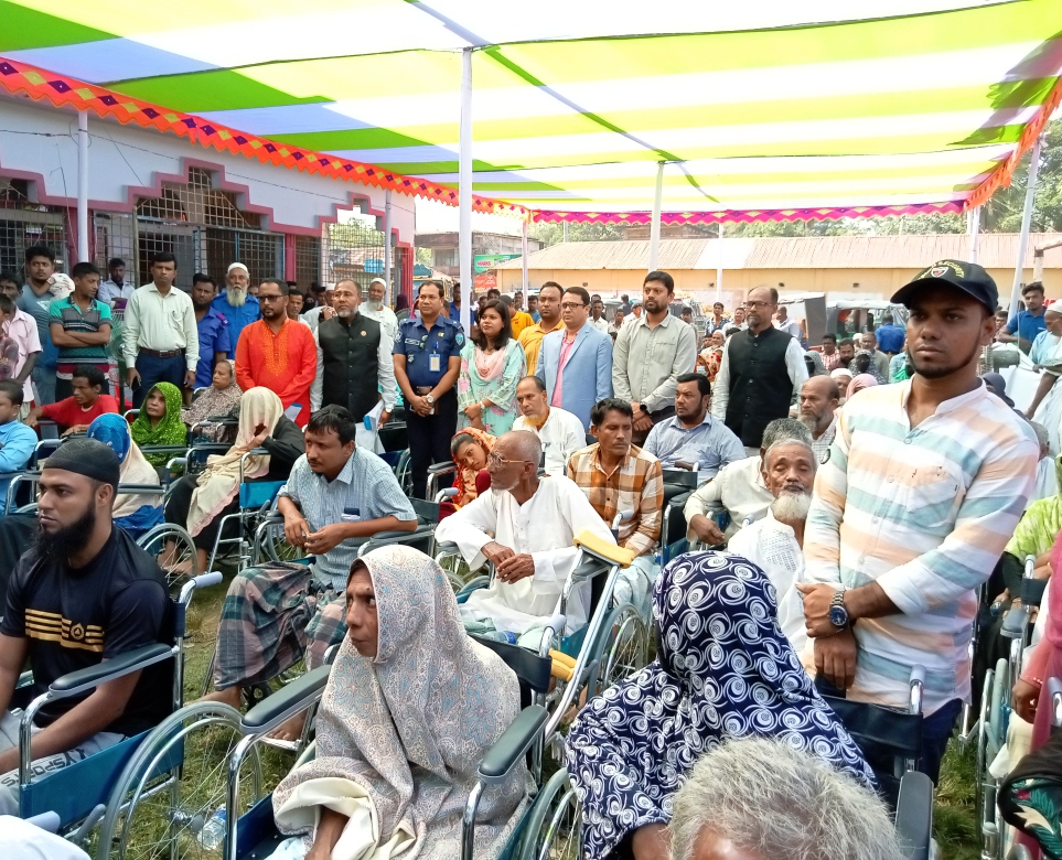 ছাগলনাইয়ায় প্রতিবন্ধীদের মাঝে হুইল চেয়ার বিতরণ