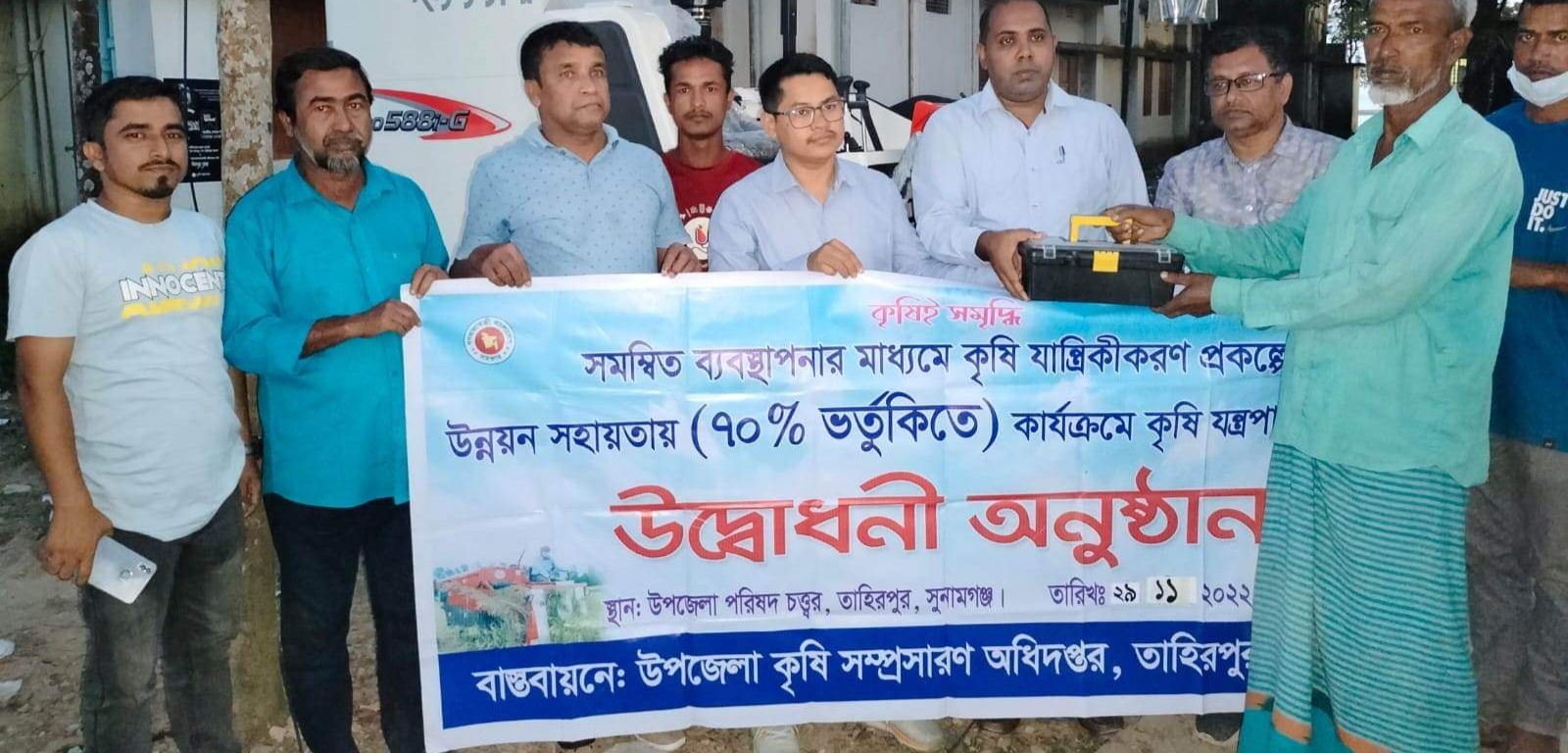 তাহিরপুরে শতকরা ৭০ভাগ ভর্তুকিতে কৃষকদের মাঝে কম্বাইন্ড হারভেস্টার বিতরণ করা হয়েছে।
