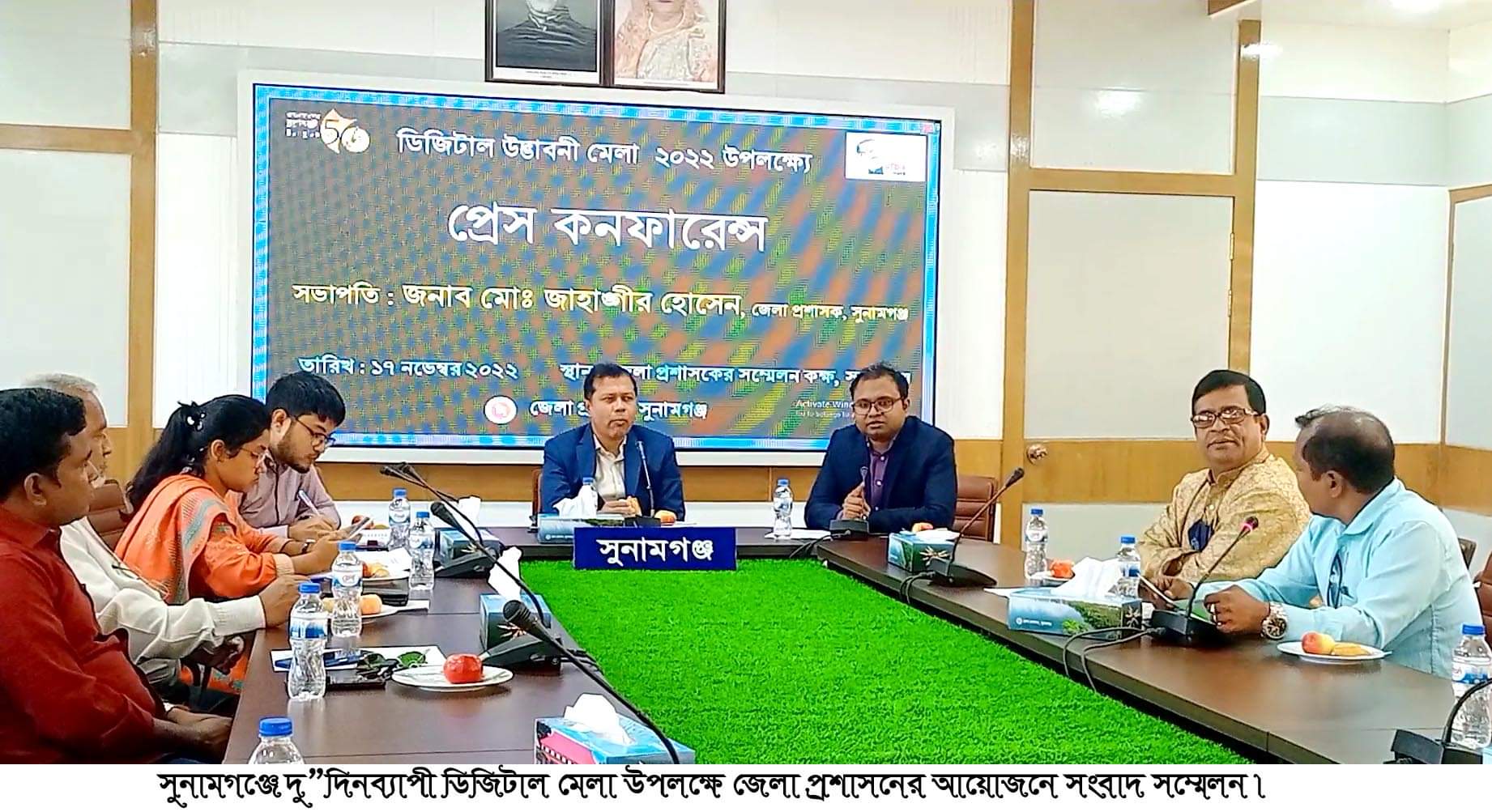 উন্নয়নের অগ্রযাত্রায় ২০৩০ সালের মধ্যে ডিজিটাল বাংলদেশকে টেকসই লক্ষ্যমাত্রা অর্জনে মডেল এসডিসি রাষ্ট্র” এবং ২০৪১ সালের মধ্যে স্মার্ট বাংলাদেশগড়ে তোলার লক্ষ্যে সুনামগঞ্জে দু”দিনব্যাপী ডিজিটাল মেলা উপলক্ষে সংবাদ সম্মেলন অনুষ্ঠিত হয়েছে। বৃহস্পতিবার দুপুর ১২টায় সুনামগঞ্জ জেলা প্রশাসনের আয়োজনে জেলা প্রশাসকের সম্মেলন কক্ষে সংবাদ সম্মেলন অনুষ্ঠিত হয়।
