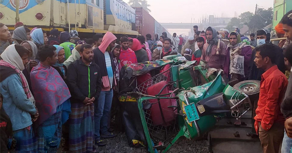 কুমিল্লার মনোহরগঞ্জে ট্রেনের ধাক্কায় অটোরিকশায় থাকা তিন যাত্রী নিহত হয়েছেন। এ ঘটনায় আহত হয়েছেন আরও দুইজন। মঙ্গলবার (৬ ডিসেম্বর) সকাল ৯.৪৫ মি.দিকে লাকসাম-নোয়াখালী রেললাইনের খিলার তুঘরিলা এলাকায় এ দুর্টঘনা ঘটে। বিষয়টি নিশ্চিত করছেন লাকসাম রেলওয়ে থানার ভারপ্রাপ্ত কর্মকর্তা (ওসি) জসিম উদ্দিন খন্দকার। তিনি বলেন, নোয়াখালী থেকে ঢাকাগামী নোয়াখালী এক্সপ্রেস ট্রেন তুঘরিলা ক্রসিংয়ে পৌঁছালে সেখানে একটি সিএনজিচালিত অটোরিকশা ক্রসিং পার হওয়ার চেষ্টা করে। এ সময় ট্রেন ধাক্কা দিলে ঘটনাস্থলেই তিনজন মারা যান আরও ২ জন গুরুতর আহত হন। আহতদের হাসপাতালে ভর্তি করা হয়েছে। আহত ও নিহতদের সবাই অটোরিকশার যাত্রী। তুঘুরিয়া এলাকায় লেভেলক্রসিংটি অরক্ষিত ছিলো বলেও জানান পুলিশের এই কর্মকর্তা।