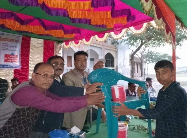 মেধা অনুসারে ১ম, ২য় ৩য় স্থান অধিকারীদের অতিথিদের নিকট থেকে পুরষ্কার গ্রহন করেন।
