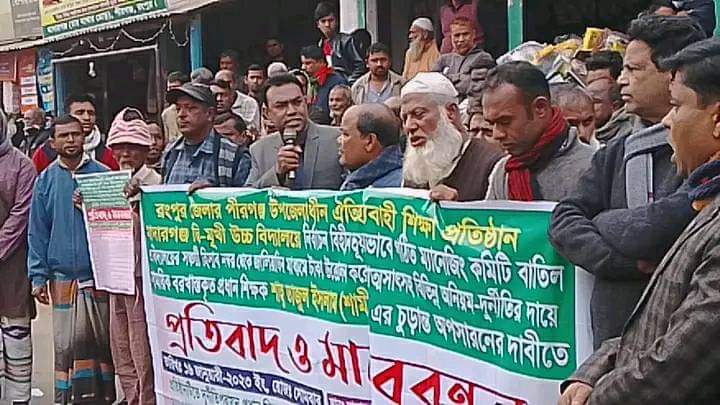 রংপুরের পীরগঞ্জ উপজেলার মাদারগঞ্জ উচ্চ বিদ্যালয়ের ম্যানেজিং কমিটি বাতিল, প্রধান শিক্ষকের অনিয়ম ও চুড়ান্ত অপসারনের দাবীতে প্রতিবাদ সভা ও মানব-বন্ধন হয়েছে।