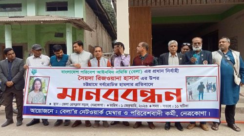 নেত্রকোণায় বেলার প্রধান নির্বাহী’র উপর বর্বরোচিত হামলার প্রতিবাদে মানববন্ধন