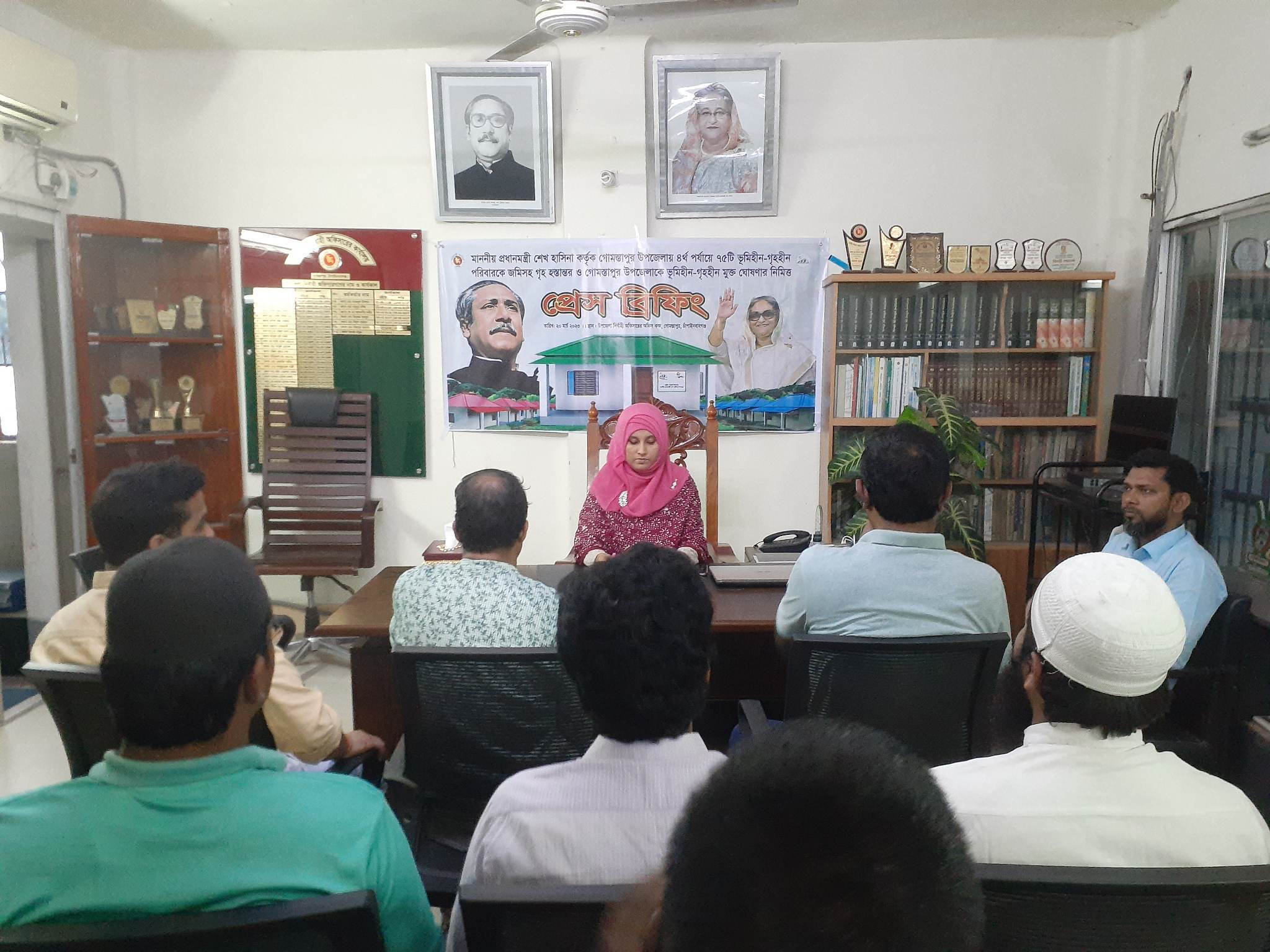 চাঁপাইনবাবগঞ্জের গোমস্তাপুরে পরিশেষে আরো ৭৫ টি ঘর হস্তান্তরের মধ্যে দিয়ে ভুমিহীন ও গৃহহীন মুক্ত হতে যাচ্ছে গোমস্তাপুর উপজেলা। আর সেই ভূমিহীন ও গৃহহীন পরিবারের মাঝে ঘর হস্তান্তর অনুষ্ঠানের উদ্বোধনের প্রস্তুতি উপলক্ষে প্রেস ব্রিফিং করেন গোমস্তাপুর উপজেলা নির্বাহী কর্মকর্তা (ইউএনও) আসমা খাতুন ।
