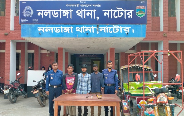 নলডাঙ্গা থানা পুলিশ সূত্রে জানা যায়,শনিবার দিনগত রাত ২টার দিকে উপজেলার বাসুদেবপুর বাজারের প্রবেশ মুখে গোপন সংবাদে অভিযান চালানো হয়।এসময় একটি আটোরিকশায় (মিশুক) ৪ থেকে ৫ জন ব্যাক্তি কে নিয়ে নাটোর দিকে যাচ্ছিল।এসময় পুলিশ তাদের গতিরোধ করে তল্লাশী করে একটি ধারালো ছোরা ২টি তালা কাটার ও একটি তাদের ব্যবহত অটোরিকশা জব্দ করা করে থানায় নিয়ে আসা হয়।পরে তাদের বিরুদ্ধে ডাকাতির চেষ্টায় মামলা দায়ের করা হয়।সেই মামলায় তাদের তিনকে গ্রেপ্তার দেখিয়ে রোববার দুপুরে আদালতে প্রেরণ করেন।নলডাঙ্গা থানার ভারপ্রাপ্ত কর্মকর্তা আবুল কালাম বলেন,তাদের বিরুদ্ধে ডাকাতির প্রস্ততিকালে তিনজনকে আটক করে নিয়মিত মামলা দায়ের করে সেই মামলায় গ্রেপ্তার দেখিয়ে আদালতে প্রেরণ করা হয়।