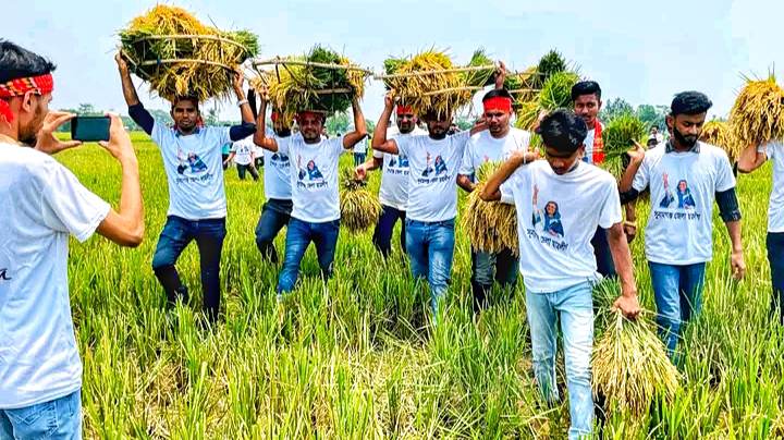 মাননীয় প্রধানমন্ত্রী বঙ্গবন্ধু কন্যা জননেত্রী শেখ হাসিনার নির্দেশে, বাংলাদেশ ছাত্রলীগের সভাপতি/ সাধারণ সম্পাদক এর ঘোষিত প্রান্তিক কৃষকের ধানকাটার কেন্দ্রীয় কর্মসূচি অংশ হিসেবে সুনামগঞ্জ জেলা ছাত্রলীগের সিনিয়র সহ সভাপতি লিখন আহমদের নেতৃত্বে লালপুর গ্রামের রহমত আলী নামের এক ক্ষুদ্র কৃষকের ১৫ শতক জমির ধান কেটে খলায় তুলে দেন জেলা ছাত্রলীগের নেতৃবৃন্দরা।