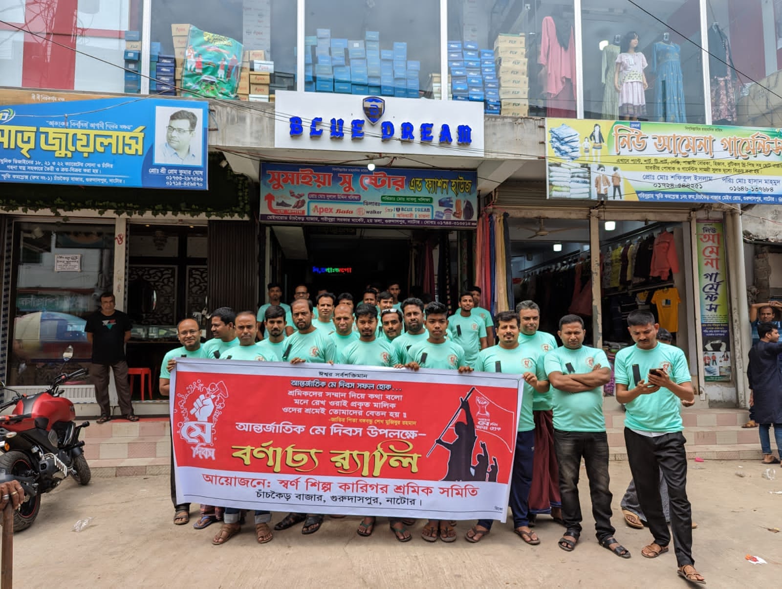 আজ ১ মে রোজ সোমবার সকাল ১০ টার দিকে চাঁচকৈড় বাজারে স্বর্ণ শিল্প কারিগর শ্রমিক সমিতি এ দিবস পালন করে। উক্ত দিবসে সভাপতি খোকন হালদার, সাধারণ সম্পাদক বিশ্বজিৎ রায় সাংগঠনিক সম্পাদক,আর এ লীল,কষাধ্যক্ষ মিলন কুন্ডু সহ সকল সদস্য বিন্দু।