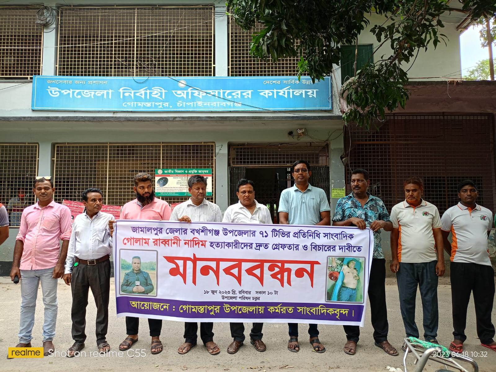 সাংবাদিক গােলাম রাব্বানী নাদিম কে হত্যার প্রতিবাদে গোমস্তাপুরে মানববন্ধন