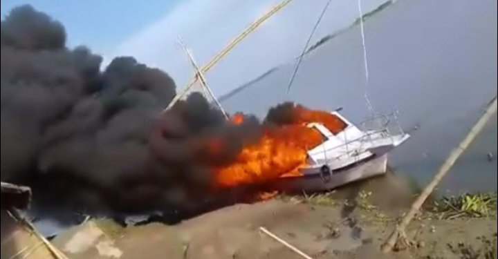কুড়িগ্রামে ধরলা নদীতে চলন্ত অবস্থায় আগুন লেগে একটি স্পিডবোট পুড়ে গেছে। তবে এতে কোনো হতাহতের ঘটনা ঘটেনি।রোববার (১০ সেপ্টেম্বর) একটি জ্বলন্ত স্পিডবোটের ভিডিও সামাজিক যোগাযোগ মাধ্যম ফেসবুকে ছড়িয়ে পড়ে। এর আগে গতকাল শনিবার জেলার উলিপুর উপজেলা বেগমগঞ্জ ইউনিয়নের সরকার পাড়ার ধরলা নদীতে ঘটনাটি ঘটে। স্থানীয়রা জানান, গতকাল বিকেলের দিকে ধরলা নদীর পাড়ে উপজেলা প্রশাসনের একটি স্পিডবোটে আগুন লাগে। আমরা দ্রুত ঘটনাস্থলে গিয়ে অনেক চেষ্টার করেও আগুন নেভাতে পারিনি। পেট্রোল থাকার কারণে আগুন নেভানো সম্ভব হয়নি।স্পিডবোট চালক নবির ইসলাম বলেন, আমি নতুন এখানে যোগদান করেছি। আমি স্পিডবোটটি চালাই নাই। যতটুকু জানতে পেরেছি কেউ একজন চালাতে গিয়ে চলন্ত অবস্থায় একটি ইঞ্জিন বন্ধ হয়ে আগুন লেগে স্পিডবোটটি পুড়ে যায়। তখন চালক ঘাটে ভিড়িয়ে নেমে পড়ে। স্পিডবোটটির আনুমানিক মূল্য ৩৫-৪০ লাখ টাকা। গতকাল অফিসের লোকজন এসে দেখে গেছেন।উলিপুর উপজেলা নির্বাহী কর্মকর্তা (ইউএনও) শোভন রাংসা ঘটনার সত্যতা নিশ্চিত করে বলেন, স্পিডবোট চালক স্পিডবোটটি রমনা ঘাট থেকে কুড়িগ্রামের ধরলা ব্রিজ নিয়ে আসার পথে আগুন লেগে পুড়ে গেছে। আগুন লাগার কারণ জানা যায়নি, তদন্ত চলছে।