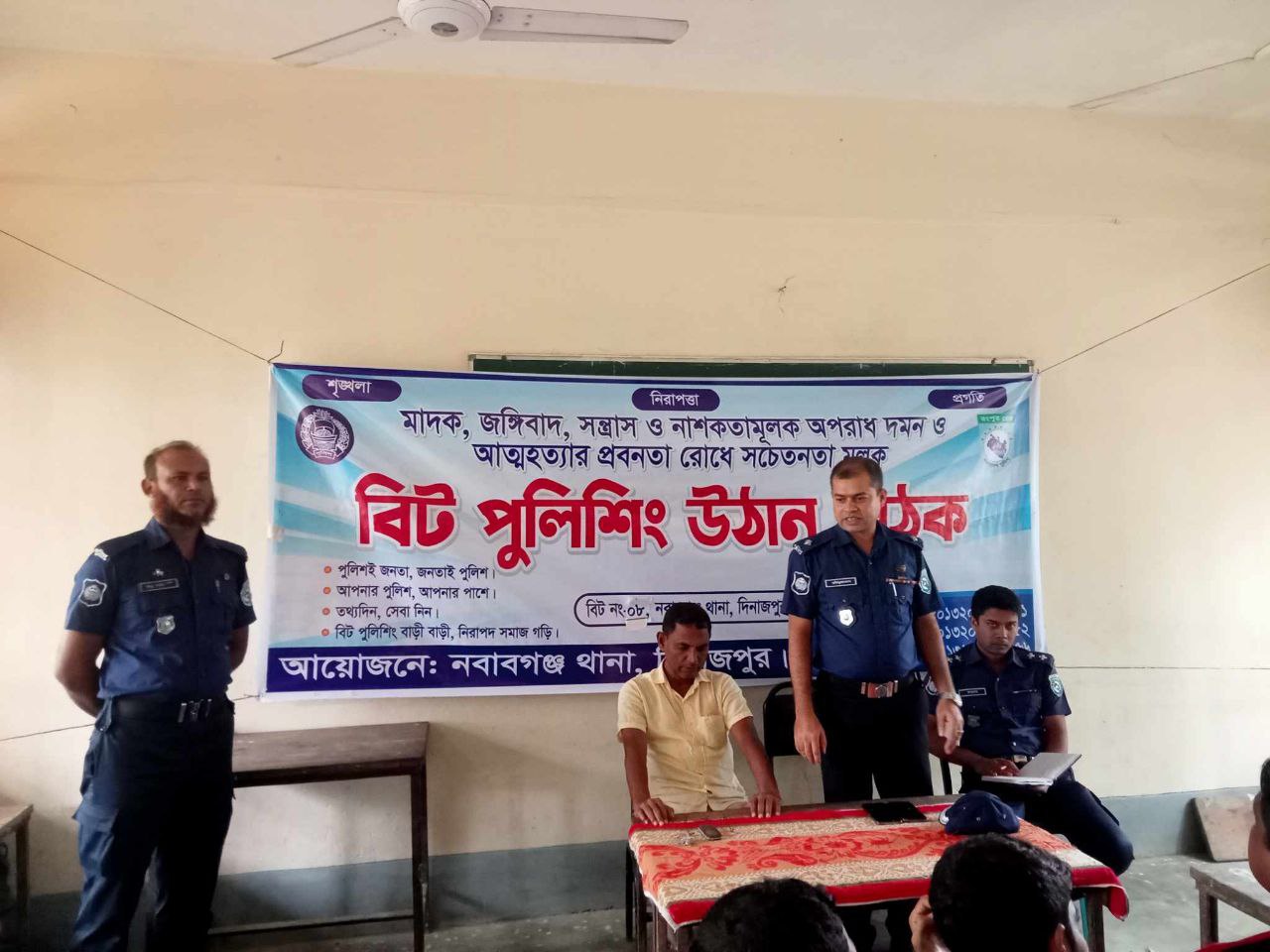 দিনাজপুরের নবাবগঞ্জে মাদক জঙ্গিবাদ, সন্ত্রাস ও নাশকতামূলক অপরাধ দমন ও আত্নহত্যার প্রবণতা রোধে বিট পুলিশিং উঠান বৈঠক এবং আলোচনা সভা অনুষ্ঠিত হয়েছে।