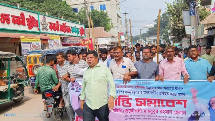 বুধবার (৮ নভেম্বর) সকালে সরিষাবাড়ী পৌরসভার শিমলাবাজার এলাকায় ইঞ্জি: মো: মাহবুবুর রহমান হেলালের নির্দেশে তার ব্যক্তিগত কার্যালয়ে উপজেলা মুক্তিযোদ্ধা সন্তান কমান্ডের সাধারণ সম্পাদক মোঃ মঞ্জুরুল ইসলাম বিদ্যুতের নেতৃত্বে শান্তি সমাবেশ করা হয়। শান্তি সমাবেশ শেষে একটি বিক্ষোভ মিছিল পৌরসভার শিমলা বাজার, বাসস্ট্যান্ড, আমতলা মোড় হয়ে শহরের প্রধান প্রধান সড়ক প্রদক্ষিণ করে। এসময় উপস্থিত ছিলেন উপজেলা স্বেচ্ছাসেবক লীগের সভাপতি জাহাঙ্গীর আলম, সাধারণ সম্পাদক প্রভাষক মামুনুর রশিদ, স্বেচ্ছাবেকলীগ নেতা মোস্তাফিজুর রহমান, উপজেলা ছাত্রলীগের উপ-দপ্তর সম্পাদক ইয়াসিন আলম শিপনসহ দলীয়, অঙ্গ ও সহযোগী সংগঠনের নেতাকর্মীবৃন্দ।