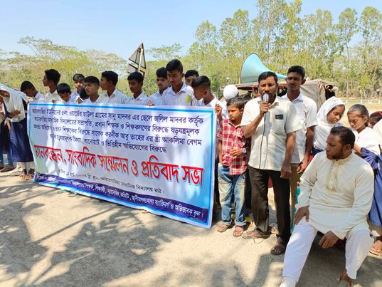 সিনিয়র শিক্ষক মাওলানা জাকির হোসেন ও দাতা সদস্য মোঃ মিজানুর রহমান হাওলাদার প্রমুখ। মানববন্ধন ও প্রতিবাদ সভায় উপস্থিত বক্তারা সকলেই জলিল মাদবর ও সাবেক করনীক আবু তাহের এর স্ত্রী আকলিমা বেগম কর্তৃক সভাপতি, প্রধান শিক্ষক ও শিক্ষক গণের বিরুদ্ধে ষড়যন্ত্রমূলক মিথ্যা, বানোয়াট ও ভিত্তিহীন অভিযোগ প্রতাহারের দাবি জানান।