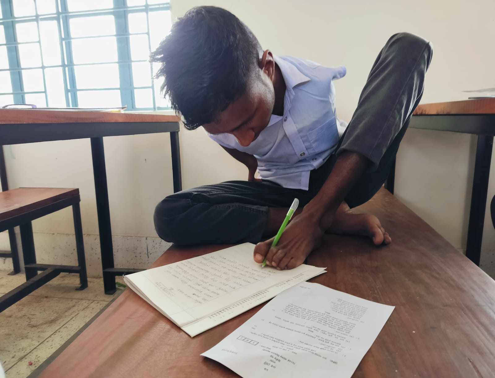 পা দিয়ে লিখে পরিক্ষায় উত্তীর্ণ সরিষাবাড়ীর অদম্য সিয়াম