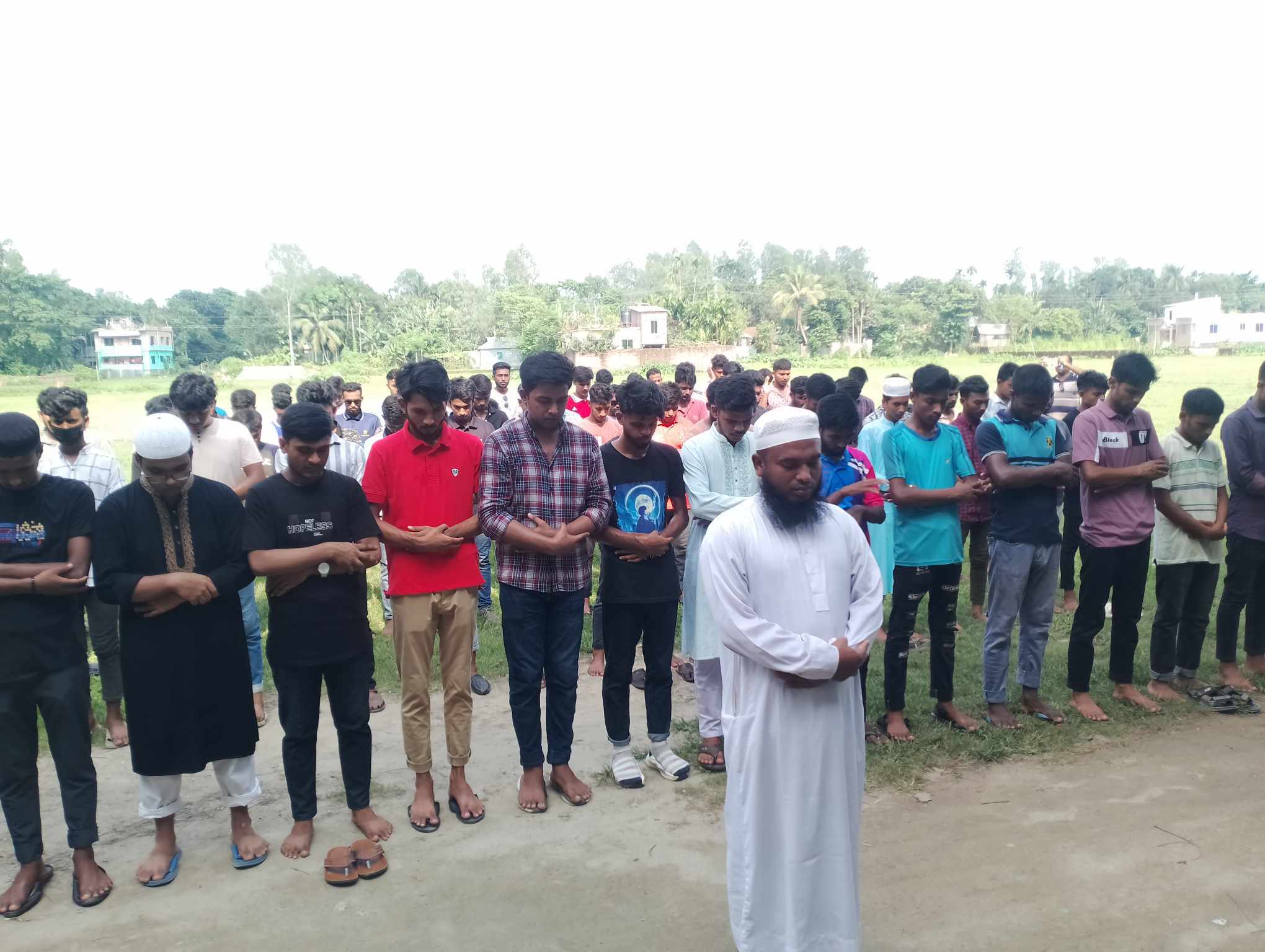 আজ বিকাল সাড়ে তিনটায় উপজেলার পৌরসভার রিয়াজ উদ্দিন তালুকদার উচ্চ বিদ্যালয় মাঠে এ গায়েবানা জানাজা নামাজ ও অনুষ্ঠিত হয়। গায়েবানা জানাজায় উপজেলার পৌরসভার সরকারি বঙ্গবন্ধু কলেজ, সরিষাবাড়ী অনার্স কলেজসহ আশপাশের কয়েকটি কলেজের তিন শতাধিক শিক্ষার্থী অংশ নেয়।