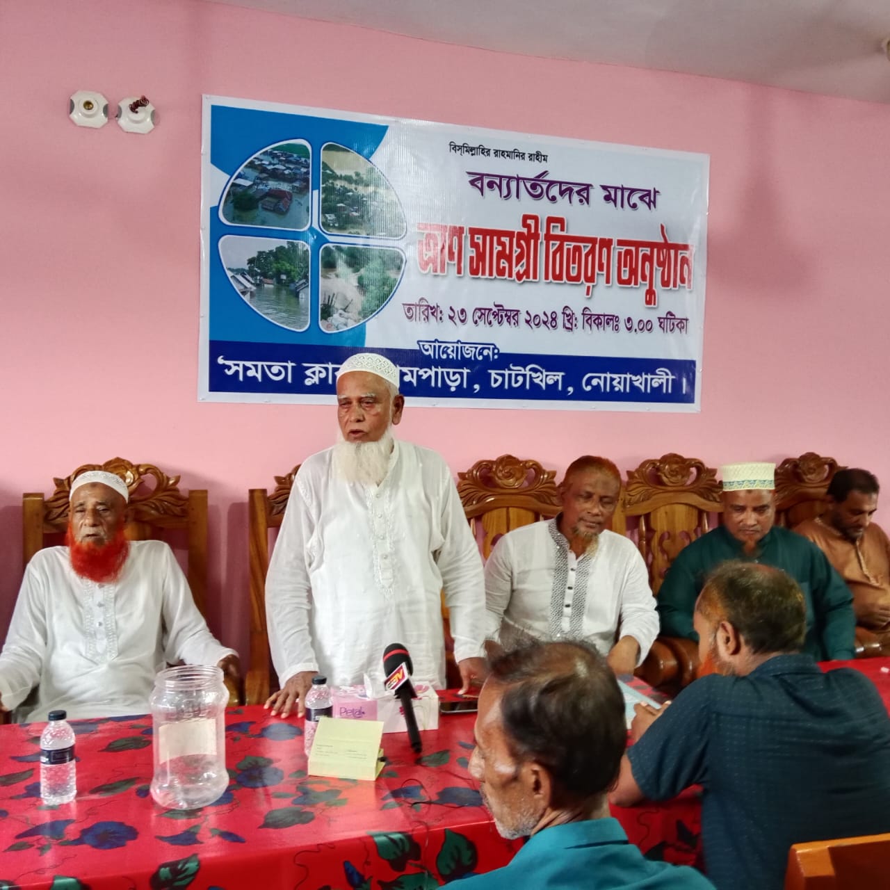 নোয়াখালীর চাটখিল উপজেলার সোমপাড়া সমতা ক্লাবের উদ্যোগে বন্যার্তদের মাঝে ত্রাণ সামগ্রী বিতরণ
