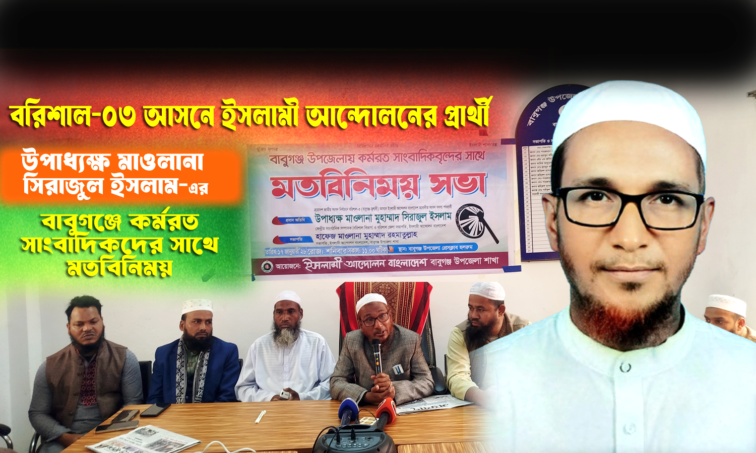 রুবেল সরদার, বাবুগঞ্জ (বরিশাল) প্রতিনিধিঃ আসন্ন ত্রয়োদশ জাতীয় সংসদ নির্বাচনকে সামনে রেখে ইসলামী জোট ও রাজনীতিতে শরীয়াহ আইন প্রশ্নে কোনো ধরনের আপসের সুযোগ নেই বলে স্পষ্ট মন্তব্য করেছেন ইসলামী আন্দোলন বাংলাদেশের বরিশাল বিভাগীয় সাংগঠনিক সম্পাদক ও বরিশাল জেলা সভাপতি এবং বরিশাল-৩ (বাবুগঞ্জ–মুলাদী) আসনের সংসদ সদস্য প্রার্থী উপাধ্যক্ষ মাওলানা মুহাম্মাদ সিরাজুল ইসলাম। তিনি বলেন, ইসলামী আন্দোলন বাংলাদেশ কোরআন ও সুন্নাহভিত্তিক রাজনীতিতে বিশ্বাসী এবং ক্ষমতায় গেলে ইসলামী শরীয়াহ আইন প্রতিষ্ঠা করাই হবে তাদের মূল লক্ষ্য।