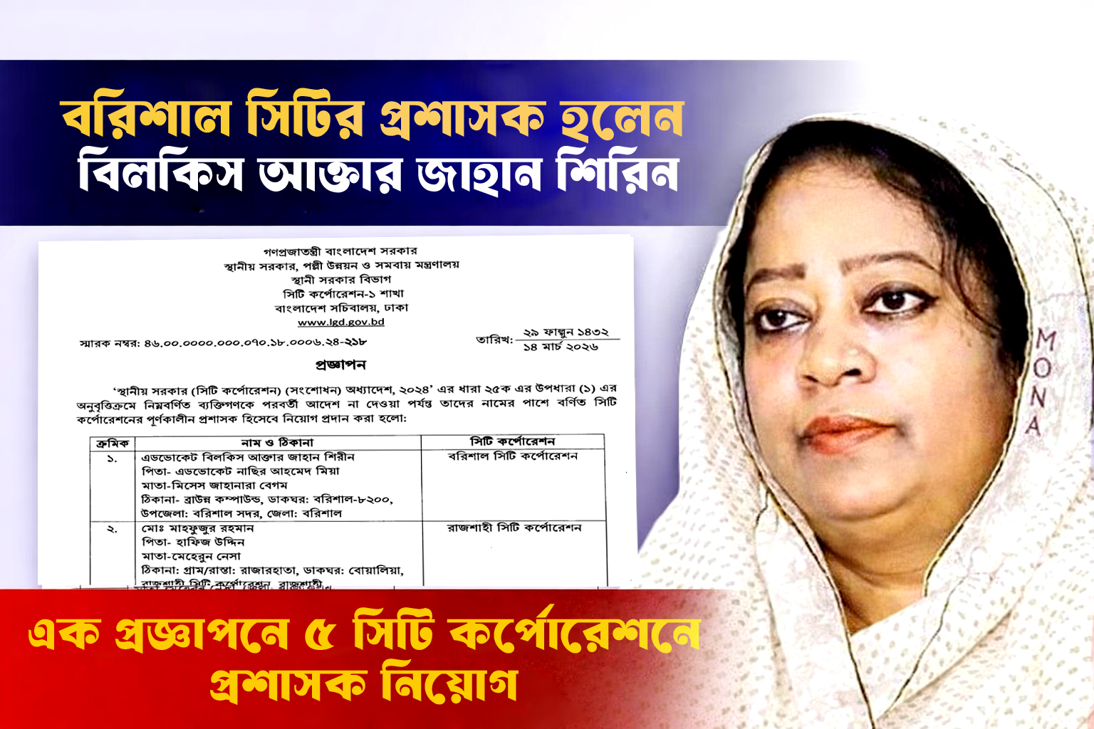 বরিশাল সিটির প্রশাসক হলেন বিলকিস আক্তার জাহান শিরিন