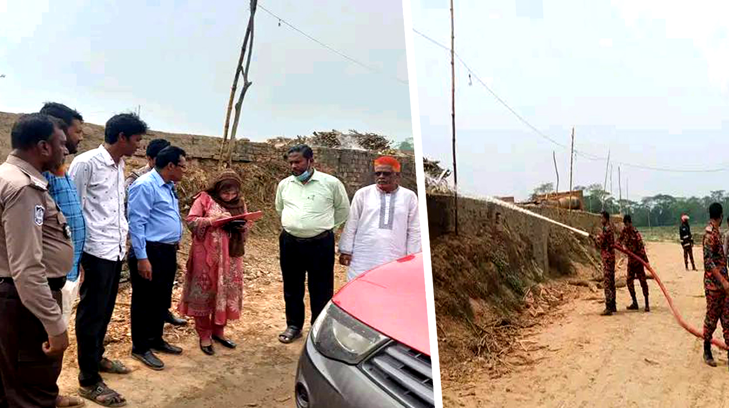সময় অবৈধভাবে প্রস্তুত করা ইট ফায়ার সার্ভিসের সহায়তায় পানি ঢেলে নষ্ট করে দেওয়া হয়।