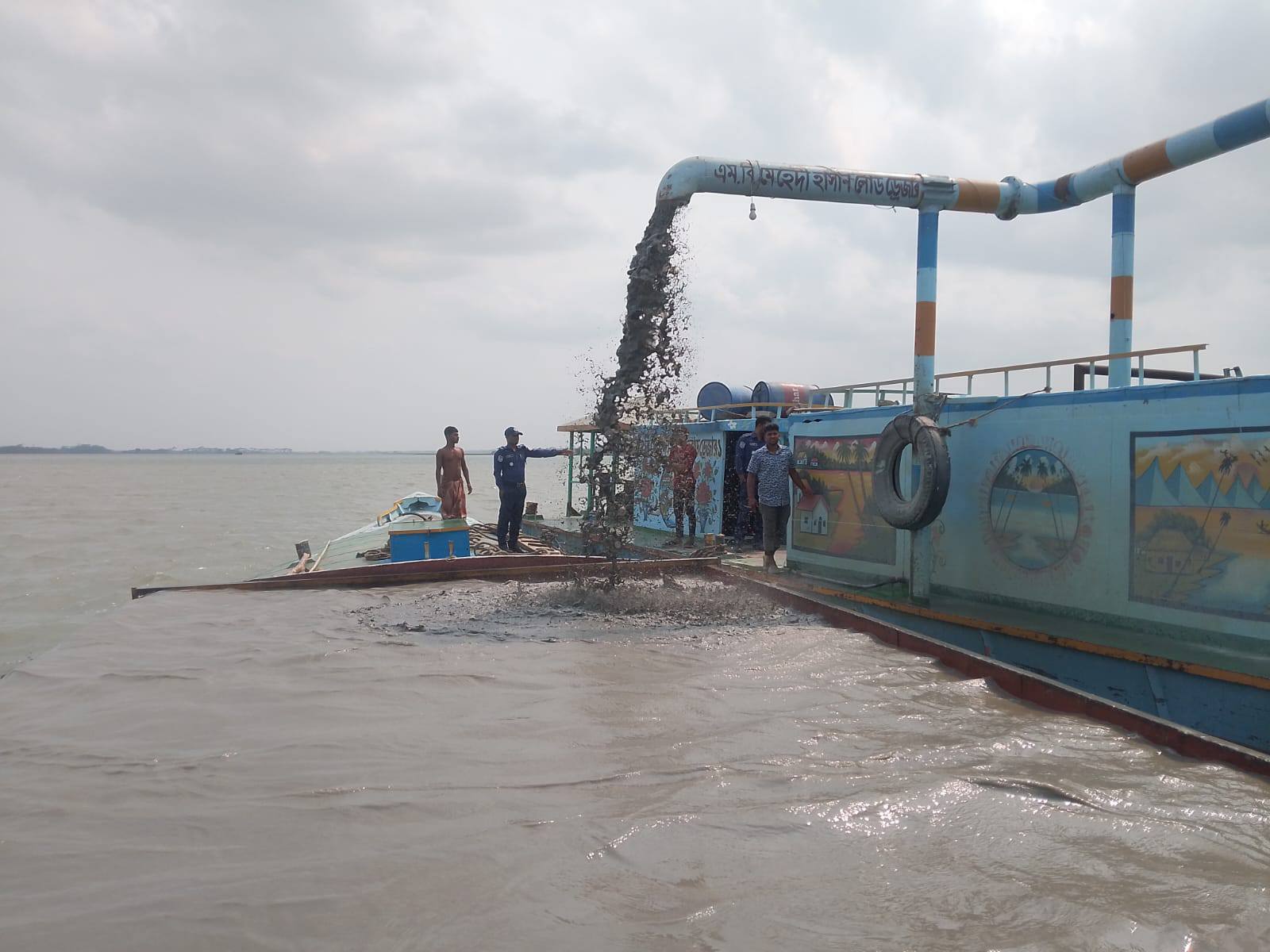 ড্রেজার মালিক মনির হোসেন প্যাদা ও এনামুল সিকদারকে যথাক্রমে ২ লাখ ও ১ লাখ ৫০ হাজার টাকা জরিমানা করা হয়।